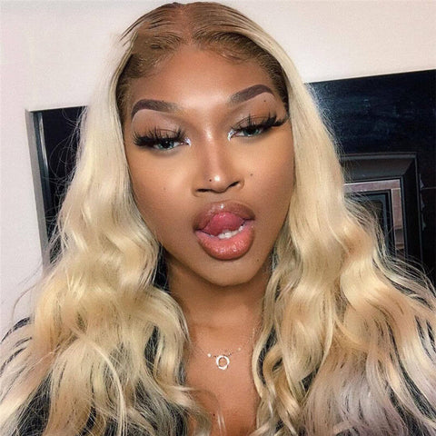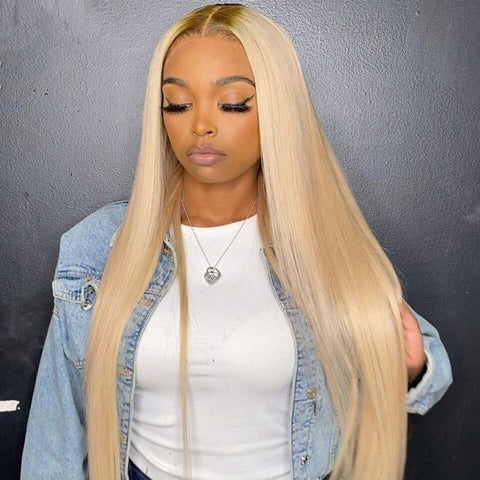 This soft, sun-kissed honey blonde is much warmer with a lovely golden yellow undertone, making it one of our most famous shades of blonde. #613's bleach blonde hair extensions have a slightly yellower hue than the lightest blonde extensions. These honey blonde lace wigs are for you if your hair is a yellow-toned bleach blonde color like Paris Hilton's.