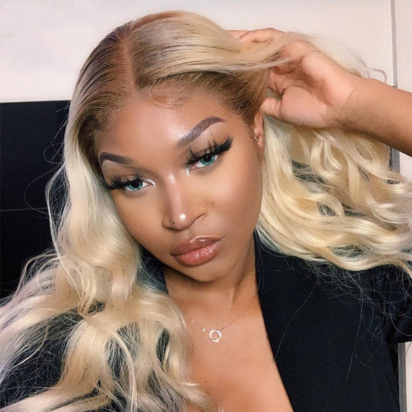 - A Honey brown wig with dark roots looks like your own hair, and dark root blonde color wigs and black root brown wigs are trendy these days. A fashionable combination of color and natural color gives you a new sexy appearance.