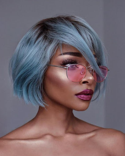 For black ladies who want to have to look both stunning and youthful this autumn or winter, then the pastel blue bob is the ideal hairstyle choice. The color combination consists of soft blue having darker roots hence making it have that natural look.