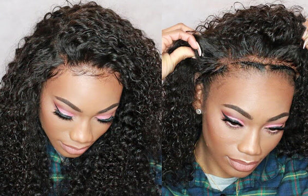 - Glueless Full Lace Wig: Nowadays more and more black girls prefer wear a glueless lace wig to show their special beauty and passion for life. Before glueless human hair wig, girls always use glue tape to wear it and it did hurt the skin and scalp. Before you wear a glueless lace wig, you need to braid your own curly natural hair and make it as flat as you can. It defnitely can help you protect the natural hair without hurting when wear a human hair wig. Now there are always 3 or 4 clip combs in the wig cap also an adjustable band tie there, so you can wear the wig without any glueless to make it stay firm on your natural curly hair.