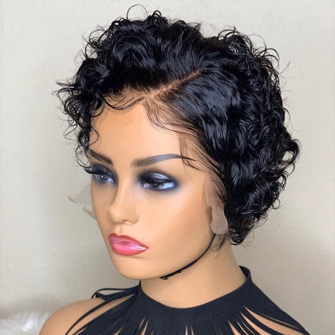 5. Side Part Curly Pixie Cut Short Bob Lace Wig