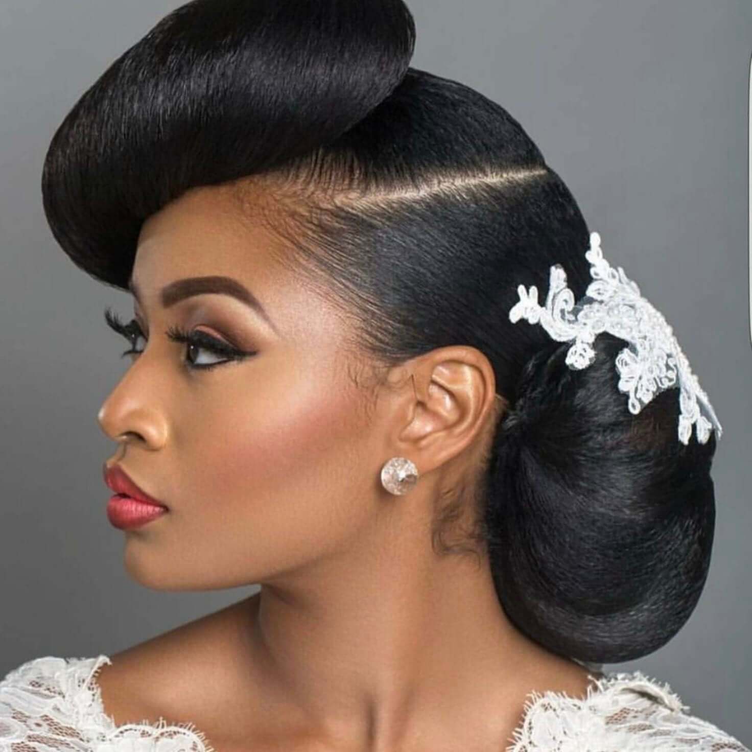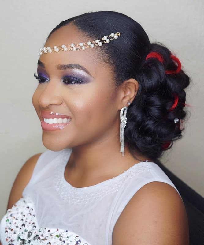 This bridal hairdo will make you stand out, as it is better suited for those ladies who want to show off the back of their gown or neckline. The style involves pulling back your long wig into a low bun, then curling and twisting it into different sections to create your desired texture that’s sure going to leave you looking like a princess.