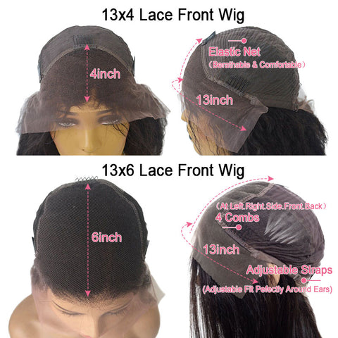 Lace frontal wigs are sewin by bundles with frontal. There are more lace parting space on the front part. If you need a more natural hairline on the front, 13x4 13x6 lace frontal wig is a better choice.